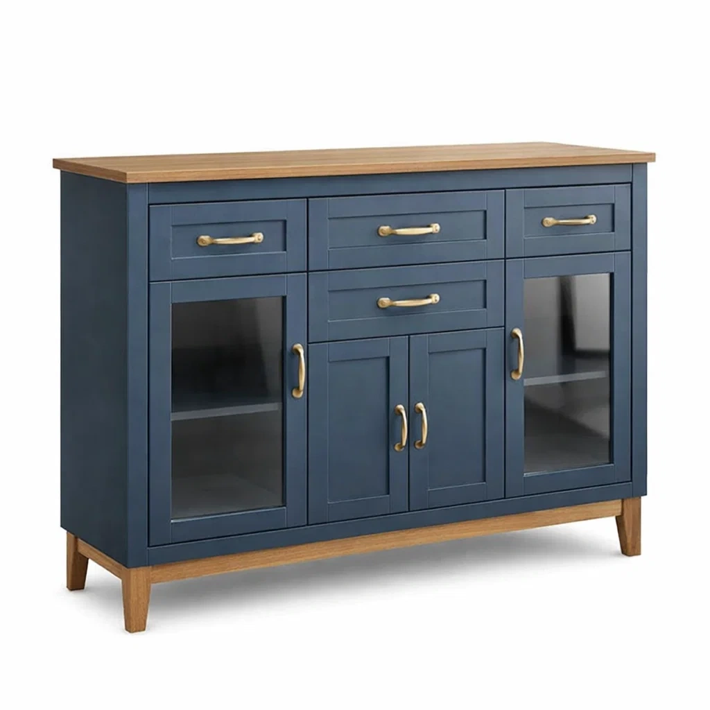 Sideboard aus Holz Blau mit Glastüren und Schubladen