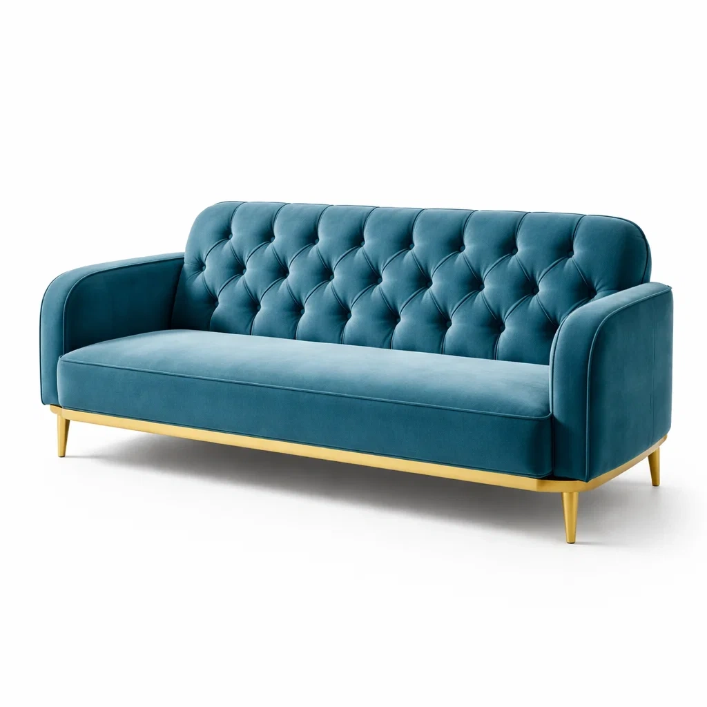 Sofa 3 Sitzer Samt Blau mit Metallgestell