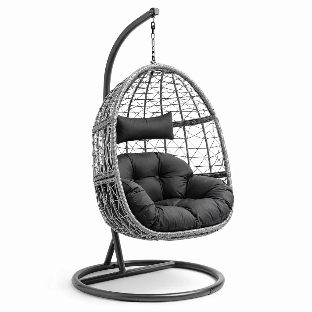 Produktliste: 1x Hängesessel, 1x Gestell, 1x Sitzkissen, 1x Nackenkissen